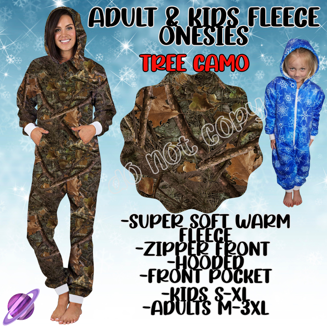 TREE CAMO - ADULT & KIDS FLEECE ONESIES CLOSING 9/28